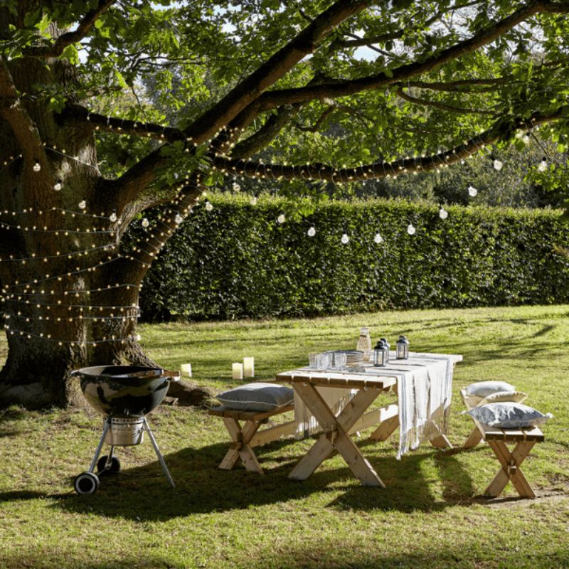 We’ve not seen our friends or family for a while and so when the sun goes down, we really won’t want the “party” to end. We want to be cosy and warm, especially as we can’t enterain inside right now so having some throws close by is a must! This is where lighting, candles and a fire pit also come in handy! (Please ensure you are being safe!)